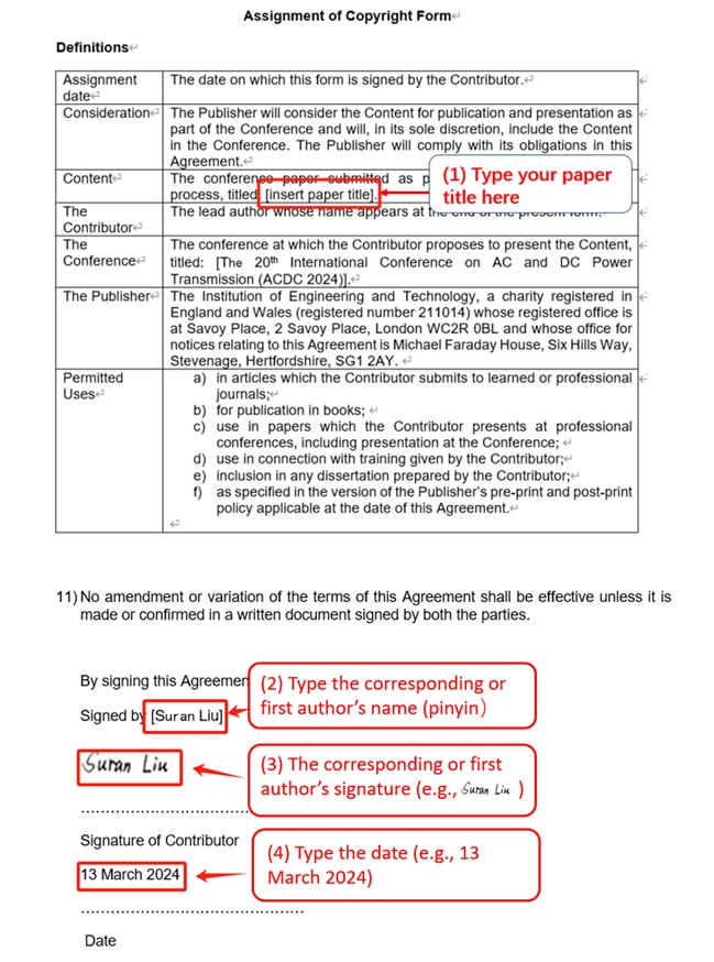 Before submitting a full paper, please complete the copyright form according to below instruction: