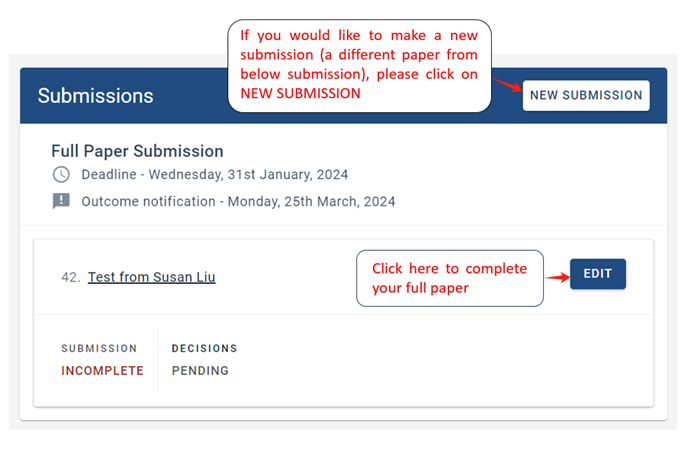 3. Follow the instruction in the screenshot to complete the full paper submission.