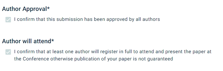 For presenting author, please tick 4 boxes as showing below, for rest authors, please tick the 3 boxes.
